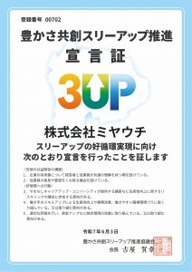 2025年6日3日に弊社が、山梨県より「スリーアップ実践企業」として認証されました。